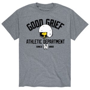 Peanuts - Woodstock Good Grief Athletic Dept - Men's Short Sleeve Graphic T-Shirt - From the best-loved comic strip in history comes officially licensed PEANUTS apparel for fans everywhere. Show your love for Charlie Brown, Snoopy, Woodstock, Lucy, Linus, Pigpen and the whole gang. Copyright Peanuts.