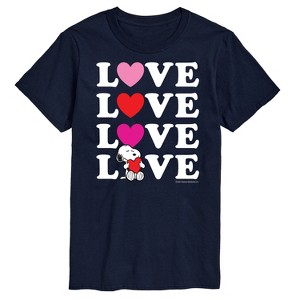Peanuts - Snoopy Love Stacked - Men's Short Sleeve Graphic T-Shirt - From the best-loved comic strip in history comes officially licensed PEANUTS apparel for fans everywhere. Show your love for Charlie Brown, Snoopy, Woodstock, Lucy, Linus, Pigpen and the whole gang. Copyright Peanuts.