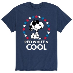 Peanuts - Red White And Cool - Men's Short Sleeve Graphic T-Shirt - From the best-loved comic strip in history comes officially licensed PEANUTS apparel for fans everywhere. Show your love for Charlie Brown, Snoopy, Woodstock, Lucy, Linus, Pigpen and the whole gang. Copyright Peanuts.