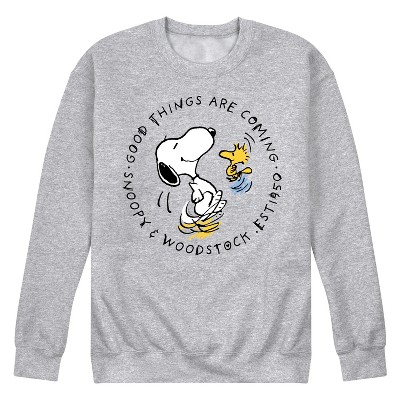 Peanuts - Snoopy And Group - Men's Crew Neck Fleece Pullover - From the best-loved comic strip in history comes officially licensed PEANUTS apparel for fans everywhere. Show your love for Charlie Brown, Snoopy, Woodstock, Lucy, Linus, Pigpen and the whole gang. Copyright Peanuts.