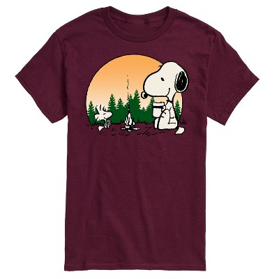 Peanuts - Snoopy Camping - Men's Short Sleeve Graphic T-Shirt - From the best-loved comic strip in history comes officially licensed PEANUTS apparel for fans everywhere. Show your love for Charlie Brown, Snoopy, Woodstock, Lucy, Linus, Pigpen and the whole gang. Copyright Peanuts.