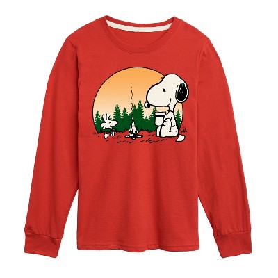 Peanuts - Snoopy Camping - Men's Short Sleeve Graphic T-Shirt - From the best-loved comic strip in history comes officially licensed PEANUTS apparel for fans everywhere. Show your love for Charlie Brown, Snoopy, Woodstock, Lucy, Linus, Pigpen and the whole gang. Copyright Peanuts.