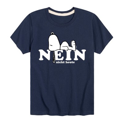 Peanuts - Fall Festival Season - Nein Nicht Heute Snoopy - Men's Short Sleeve Graphic T-Shirt - From the best-loved comic strip in history comes officially licensed PEANUTS apparel for fans everywhere. Show your love for Charlie Brown, Snoopy, Woodstock, Lucy, Linus, Pigpen and the whole gang. Copyright Peanuts.