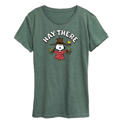Peanuts - Snoopy Scarecrow Hay There - Men's Short Sleeve Graphic T-Shirt - From the best-loved comic strip in history comes officially licensed PEANUTS apparel for fans everywhere. Show your love for Charlie Brown, Snoopy, Woodstock, Lucy, Linus, Pigpen and the whole gang. Copyright Peanuts.