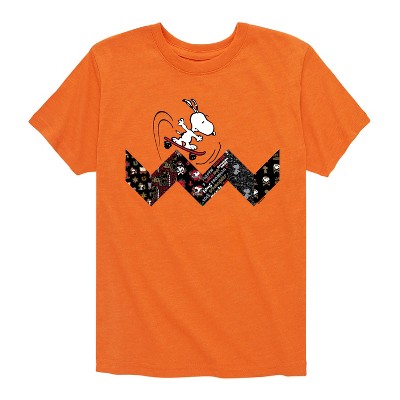 Men's Peanuts Snoopy Skating Pattern Short Sleeve Graphic T-Shirt - Orange - Small