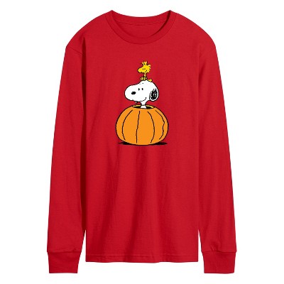 Men's - Peanuts - Snoopy Woodstock Pumpkin Long Sleeve Graphic T-Shirt
