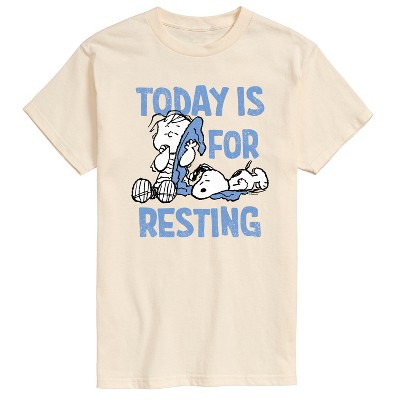 Peanuts - Today Is For Resting - Men's Short Sleeve Graphic T-Shirt - From the best-loved comic strip in history comes officially licensed PEANUTS apparel for fans everywhere. Show your love for Charlie Brown, Snoopy, Woodstock, Lucy, Linus, Pigpen and the whole gang. Copyright Peanuts.