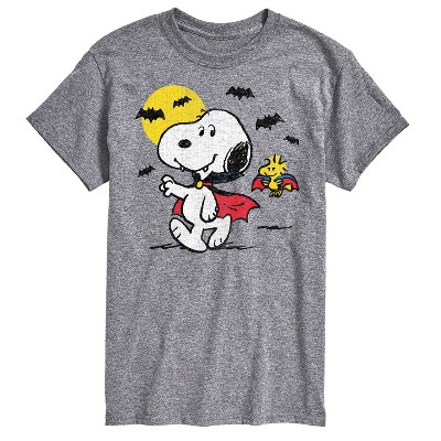 Peanuts - Vampire Snoopy Woodstock - Men's Short Sleeve Graphic T-Shirt - From the best-loved comic strip in history comes officially licensed PEANUTS apparel for fans everywhere. Show your love for Charlie Brown, Snoopy, Woodstock, Lucy, Linus, Pigpen and the whole gang. Copyright Peanuts.