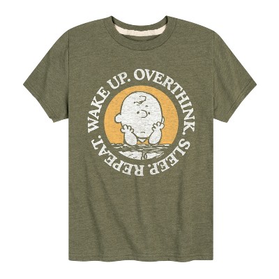 Men's Peanuts Wake Me For Candy Short Sleeve Graphic T-Shirt - Heather Military Green - X-Large