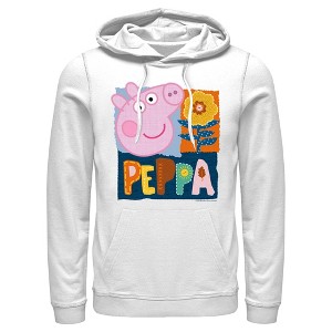 Join Peppa and her family and friends for adventures, friendships, learning, and more, with fun new officially licensed apparel for the whole family from the long-running British animated children's series Peppa Pig! This cute Peppa Pig Men's Spring Portrait Graphic Hoodie features Peppa Pig along with a yellow flower and her name printed in a colorful embroidery-inspired design across the front. Get your very own Peppa Pig tee today and get in on the fun!