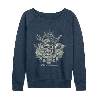 Men's Pirates of the Caribbean Skull and Swords Long Sleeve Graphic T-Shirt - Navy - Medium