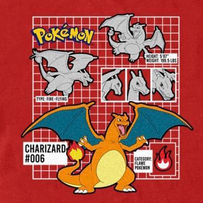 • Strut your stuff with this stylish new everyday men's t-shirt that is perfect for every occasion! Featuring a grid design with Charizard's graphics and its Pokedex data, including type, weight, height, and category.