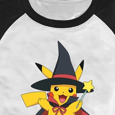 Gotta catch 'em all! Get into the Halloween spirit with the iconic world of Pokemon cards, video games, TV shows, and more with adorable new officially licensed apparel for the whole family featuring all your favorite Pokemon! This Men's Pokemon Halloween Pikachu Magic Wand Graphic Baseball T-Shirt features a large graphic of the cute Pikachu dressed up as a wizard for the scariest time of the year! Grab one of these new Pokemon tees this Halloween and be the envy of all your friends!