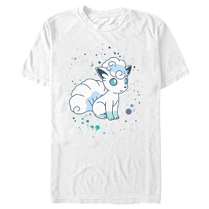 • Strut your stuff with this stylish new men's t-shirt that is perfect for every occasion! Featuring a cute artwork of Vulpix in its Alolan form sitting, surrounded by splashes of paint.