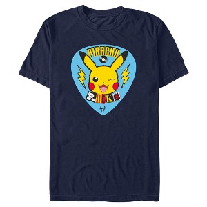 Gotta catch 'em all! Get into the game with the iconic world of Pokemon cards, video games, TV shows, and more with adorable new officially licensed apparel for the whole family featuring all your favorite Pokemon! This Men's Pokemon Pikachu Rocks Graphic T-Shirt features the text: "Pikachu Rocks," with him winking inside a guitar pick across the front. Grab some new Pokemon apparel today and be the envy of all your friends!