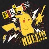 Gotta catch 'em all! Get into the game with the iconic world of Pokemon cards, video games, TV shows, and more with adorable new officially licensed apparel for the whole family featuring all your favorite Pokemon! This Men's Pokemon Pikachu Rules Guitar Graphic T-Shirt features Pikachu with a guitar, lighting bolts, and the text: "Pokemon rule!!!," across the front. Grab some new Pokemon apparel today and be the envy of all your friends!