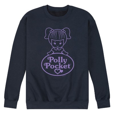 Polly Pocket - Logo And Doll - Men's Crew Neck Fleece Pullover - Mini fashion meets maximum charm in Polly Pocket graphic apparel. Featuring Polly and her compact-sized world, these playful designs are a nod to tiny adventures and big imagination.