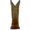 Without the coffee brown and cactus green color combo, this might be just another boot, but with these rich tones, it stands out in all the right ways. Made with full-grain leather for strength and durability, this 12” Rebel by Durango boot brings together bold style and classic Western tradition. The square toe keeps the look timeless, while the unique color palette adds modern edge.Comfort is key, and this boot delivers. Inside, a soft mesh lining helps wick away moisture and keeps your feet cool. The cushioned, ventilated footbed offers all-day comfort, and a tempered steel shank provides arch support and stability — especially helpful when you're on your feet or on the move. The rolled shank area further enhances ease of movement and comfort around the arch.The outsole combines slip and oil-resisting rubber with EVA for added flexibility and cushioning. A double row sole stitch boosts durability, and the abrasion-resistant bottom ensures long-lasting wear. Underneath it all, the 1 1/2 rocker heel gives you a smooth, balanced stride with that signature Rebel look.Bold, built to last, and incredibly wearable, these Rebel by Durango boots are ready to help you own your Western style—wherever the road takes you.