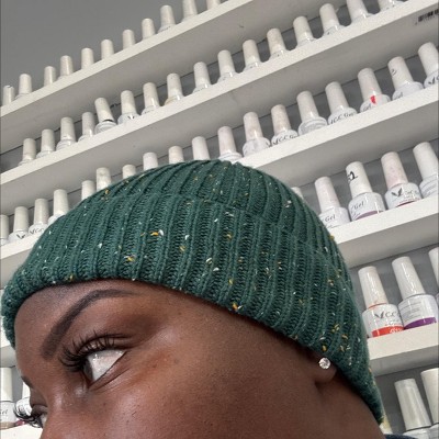 A: The beanie features a ribbed plaited design with a foldover cuff for a snug fit.