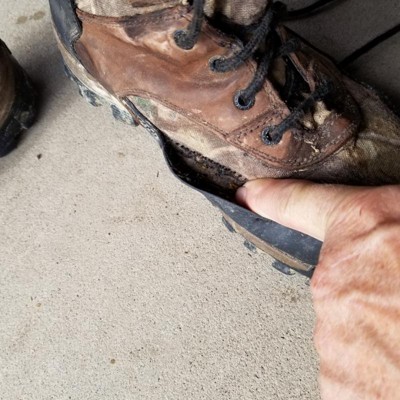 I bought the boots two years ago, the look great and felt comfy but I have put around 250 miles on them the sole still looks new, the boot has completely started to fall apart, i just came back from hunting with cold wet feet in North Dakota, I i very disapointed in the life of this boot, I am a small guy who normally gets great use of my boots but not this one. terible product.