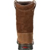 This comfortable pull-on boot combines casual style with waterproofing and great traction. It's the ROCKY® Outback GORE-TEX Waterproof Wellington Moc Toe Boot.Slip into this men's casual shoe and still be ready for whatever comes your way. This is a waterproof casual boot with breathable GORE-TEX construction. Water and mud are no problem!You also get great traction because of the Outback outsole that's designed to give you stable footing on uneven terrain.This is a comfortable casual boot due to the Rocky Terra Suspension cushion footbed that moves air around inside your boot for cooling comfort.The 10-inch brown leather boot has a moc toe style and pull loops at the top.Wear this men's boot and you don't have to change footwear for your next outing. The waterproof footwear is comfortable and casual, yet still ready for rugged terrain wet conditions. This moc toe boot does in all!