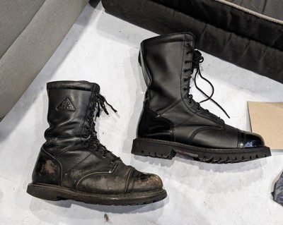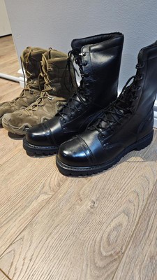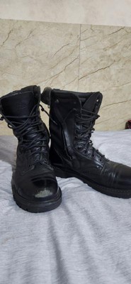 The exterior on this Rocky Men's Jump Boot has an adequate amount of durability and ruggedness so that it is able withstand the most unforgiving working conditions. The upper has been built from premium full-grain black leather. These 10-inch public service boots have a side zipper that aids in getting them on/off rapidly. In addition to these features, there is a polishable toe so that you can keep these boots looking like they are in tiptop shape.A great deal of the paratrooper boot's strength attributed to its welt construction. Eventually, all public service boots begin to wear down; with this construction, these boots can be repaired with no trouble and they revert back to their original hardiness.The contoured EVA footbed provides cushioning that will pacify your achy feet, and will make standing a much more comfortable experience.You will have more stability as a result of the stabilizer, because it is non-metallic you will not have to remove your footwear or be delayed around scanners or sensitive equipment. The black rubber lug outsole provides dependable traction; this is especially beneficial when you are walking on uneven terrain.