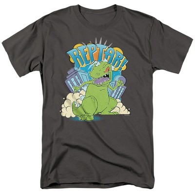 Rugrats - Reptar Heads - Men's Short Sleeve Graphic T-Shirt - Embark on a nostalgic adventure with the Rugrats graphic apparel collection! Showcasing beloved characters like Tommy, Chuckie, Angelica, Phil, Lil, and more, each design captures the playful spirit and imagination of the iconic animated series. Perfect for fans of all ages, these pieces bring childhood memories to life with fun, colorful style.