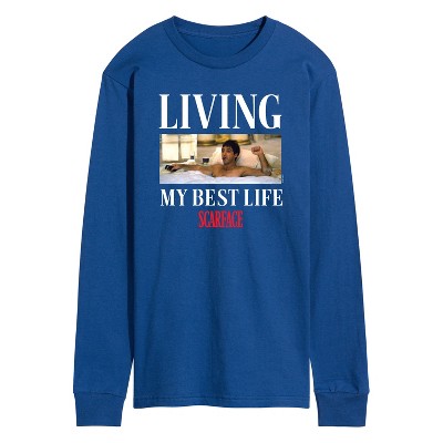 Men's Scarface The World Is Yours- Men's Long Sleeve Graphic T-Shirt Long Sleeve Graphic T-Shirt - Royal Blue - Medium