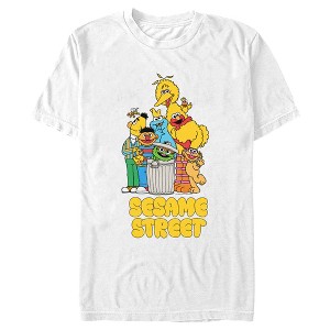 • Strut your stuff with this stylish new men's t-shirt that is perfect for every occasion! Featuring Bert, Big Bird, Cookie Monster, Elmo, Ernie, Little Bird, Oscar the Grouch, and Zoe cutely posing across the front with the TV show name written in cool graffiti style below.