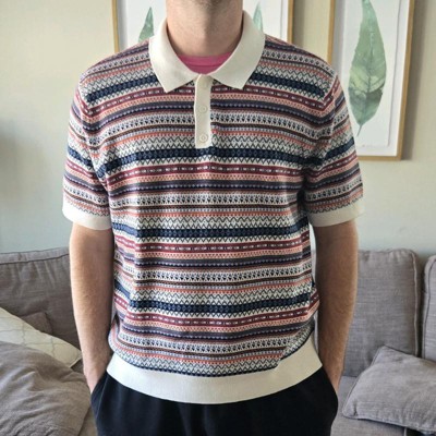 [This review was collected as part of a promotion.] This short sleeve sweater combines aesthetics with functionality. Both a statement and great layering piece. XL fits Andrew as it’s his usual size (5’10, 240ish lbs). Nice cut even for broad build. There’s also a vintage and country club hint to the design. Vacay friendly too! He likes the vibe not too loud.