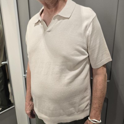 [This review was collected as part of a promotion.] Dad really like this short sleeved collared sweater. he said he looks distinguished and a bit like a golfer in it. he said it was super comfortable and the only thing he wished it would have, would be a button or two for the collar. He said it felt nice on the skin and not itchy. It's also lightweight and easy to put on. he usually wears a L or a XL and went with a XL for this short sleeved sweater. I received an incentive to write this review.
