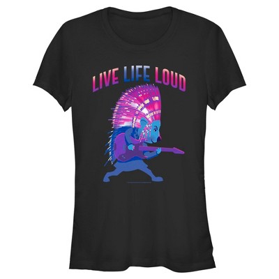 Get ready to join your favorite animal stars for another spectacular performance with this officially licensed Sing 2 Ash Live Life Loud Men's Tee! This design features Ash rocking out on her electric guitar and the phrase "Live Life Loud." Grab this stylish graphic tee and watch the awe-inspiring musical performances from Johnny the gorilla, Rosita the pig, and others from the hit new movie Sing 2!