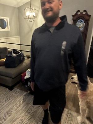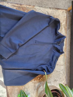 The Men's Sleek Spacer Half Zip Sweatshirt - All In Motion color is Dark Blue and size XL. First, I would say this is true to size, it’s very comfortable and fits. Well, the fabric is smooth and has a cool touch to it.