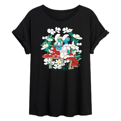 Smurfs - Group Logo - Men's Short Sleeve Graphic T-Shirt - Step into a whimsical world with graphic apparel inspired by The Smurfs! Featuring classic characters like Papa Smurf, Smurfette, Brainy, and the whole blue crew, these playful designs capture the charm and fun of the beloved animated series. With bright colors and nostalgic flair, this collection is perfect for fans of all ages.