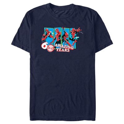 • Strut your stuff with this stylish new 60th anniversary men's t-shirt that is perfect for this occasion! Featuring Spider-Man detecting danger with his spider-sense and shots of him in action above his head.