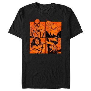 • Strut your stuff with this stylish new men's t-shirt that is perfect for every occasion! Featuring Spider-Man, Spider-Girl, Miles Morales' Spider-Man, and Spider-Woman in black and orange portraits across the front.