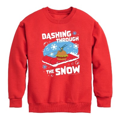 SpongeBob SquarePants - Dashing Through The Snow - Men's Crew Neck Fleece Pullover - Dive into the fun of Bikini Bottom with SpongeBob SquarePants graphic apparel! Featuring colorful designs of SpongeBob, Patrick, Squidward, Sandy, and more, this collection brings the show's quirky humor and unforgettable moments to life. Perfect for fans of all ages, these pieces add a splash of personality to any wardrobe.