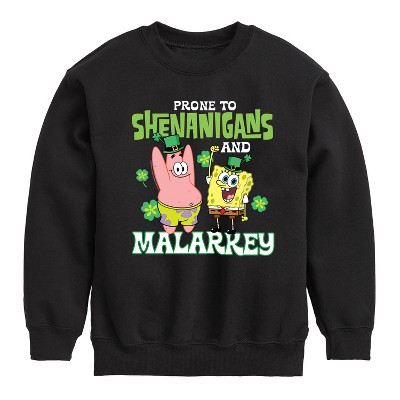 SpongeBob SquarePants - Prone To Shenanigans And Malarkey - Men's Crew Neck Fleece Pullover - Dive into the fun of Bikini Bottom with SpongeBob SquarePants graphic apparel! Featuring colorful designs of SpongeBob, Patrick, Squidward, Sandy, and more, this collection brings the show's quirky humor and unforgettable moments to life. Perfect for fans of all ages, these pieces add a splash of personality to any wardrobe.