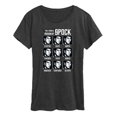 Star Trek - Spock Moods - Men's Short Sleeve Graphic T-Shirt - Celebrate the essence of Paramount's Star Trek with officially licensed apparel featuring unique designs crafted exclusively by Hybrid Apparel. Each piece brings beloved characters, iconic imagery, and memorable moments to life, offering Star Trek fans a one-of-a-kind way to showcase their passion.