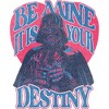 Stop looking for love in Alderaan places! Add a little out-of-this-world style to your wardrobe with this new Star Wars Darth Vader Be Mine Men's Graphic T-Shirt just in time for Valentine's Day! This cute design features a distressed graphic of Darth Vader alongside the phrase: "Be mine it is your destiny" printed across the front. This charming tee is perfect for the Valentine in your life who loves all thingsStar Wars!