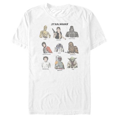 Celebrate the movie that started it all with the Star Wars Episode IV White T-Shirt. Your favorite scenes and characters from Star Wars Episode IV: A New Hope are printed around the Star Wars logo on this classic graphic tee.