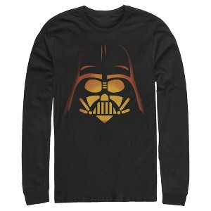 • Strut your stuff with this stylish new Halloween men's long-sleeve t-shirt featuring Darth Vader's helmet glowing in the dark, like a jack-o'-lantern.