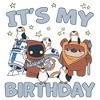 • Make every birthday celebration extra galactical with this stylish new men's t-shirt! Featuring adorable versions of Porg, R2-D2, Jawa, BB-8, and Ewok with stars and the statement: "It's My Birthday" all around them.