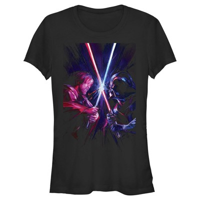 Join Jedi Master Obi-Wan Kenobi as he deals with his apprentice, Anakin Skywalker, turning to the dark side and becoming the infamous evil Sith Lord Darth Vader, in the exciting new action-packed limited series from Disney Obi-Wan Kenobi! This men's tee features an artistic grayscale graphic of Obi-Wan Kenobi and Darth Vader as their lightsabers explode with force mid-battle. It's time to feel the Force with this galactic Star Wars graphic t-shirt!