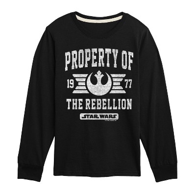 Star Wars - Property Of Rebellion - Men's Short Sleeve Tee - Embark on an epic adventure with our officially licensed Star Wars graphic apparel collection! Celebrate the legendary saga with bold, iconic designs featuring your favorite characters, ships, and moments from a galaxy far, far away. Whether it's the fearless Luke Skywalker, the powerful Darth Vader, the wise Yoda, or the unforgettable Millennium Falcon, each piece captures the magic and excitement of the Star Wars universe. From graphic tees and hoodies to sweatshirts, this collection combines comfort with striking artwork that showcases the timeless appeal of the Star Wars story.