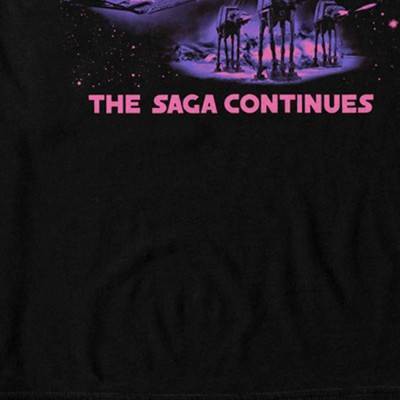 Travel back in time to 1977 for the original theatrical release of your favorite space opera with the officially licensed Star Wars Retro Saga Continues Character Collage Men's Big & Tall Graphic T-Shirt. This retro style men's shirt features a bright neon purple print with Darth Vader, Yoda, Lando, Boba Fett, AT-ATs, and TIE Fighters and reads "Star Wars The Saga Continues" across the front. This epic tee in extended sizes celebrates the Star Wars franchise and is perfect for fans everywhere.