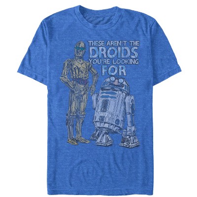 Is your protocol droid on the fritz? Give the Star Wars Retro Episode VII Droids Heather Royal Blue T-Shirt a try! C-3PO, BB-8, and R2-D2 are all printed in vintage style next to the Star Wars logo on the front of a durable blue tee.
