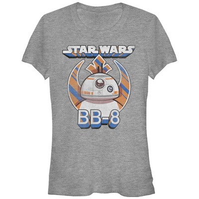 Join Rey on the planet Jakku with the Star Wars Retro Rey and BB-8 Heather Charcoal T-Shirt! Get a vintage look with this brand new Star Wars: The Force Awakens tee that features Rey and BB-8 printed next to the Star Wars logo.