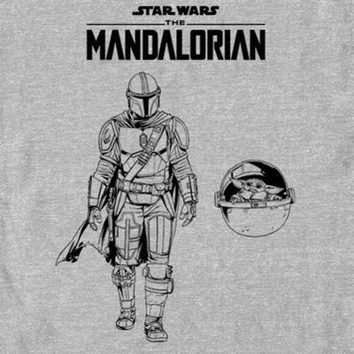 When your Mandalorian armor is at the cleaners, give this officially licensed Star Wars: The Mandalorian Grogu and Din Djarin Black and White Sketch Men's T-Shirt a try instead! Take up the reins as a Mandalorian gunfighter exploring the galaxy. This awesome Star Wars tee features Din Djarin and Grogu, the cute green baby alien in his pod with the show's logo at the top. Celebrate the Star Wars-inspired television series, The Mandalorian with this fun tee today!