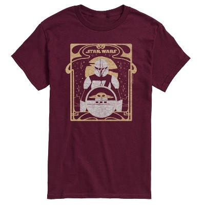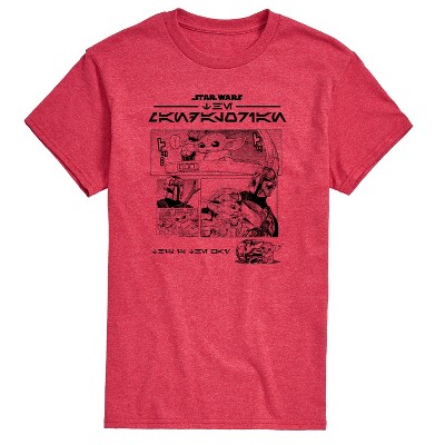 Men's Star Wars The Mandalorian Mando Grogu Stickers Short Sleeve Graphic T-Shirt - Heather Red - 2 X-Large